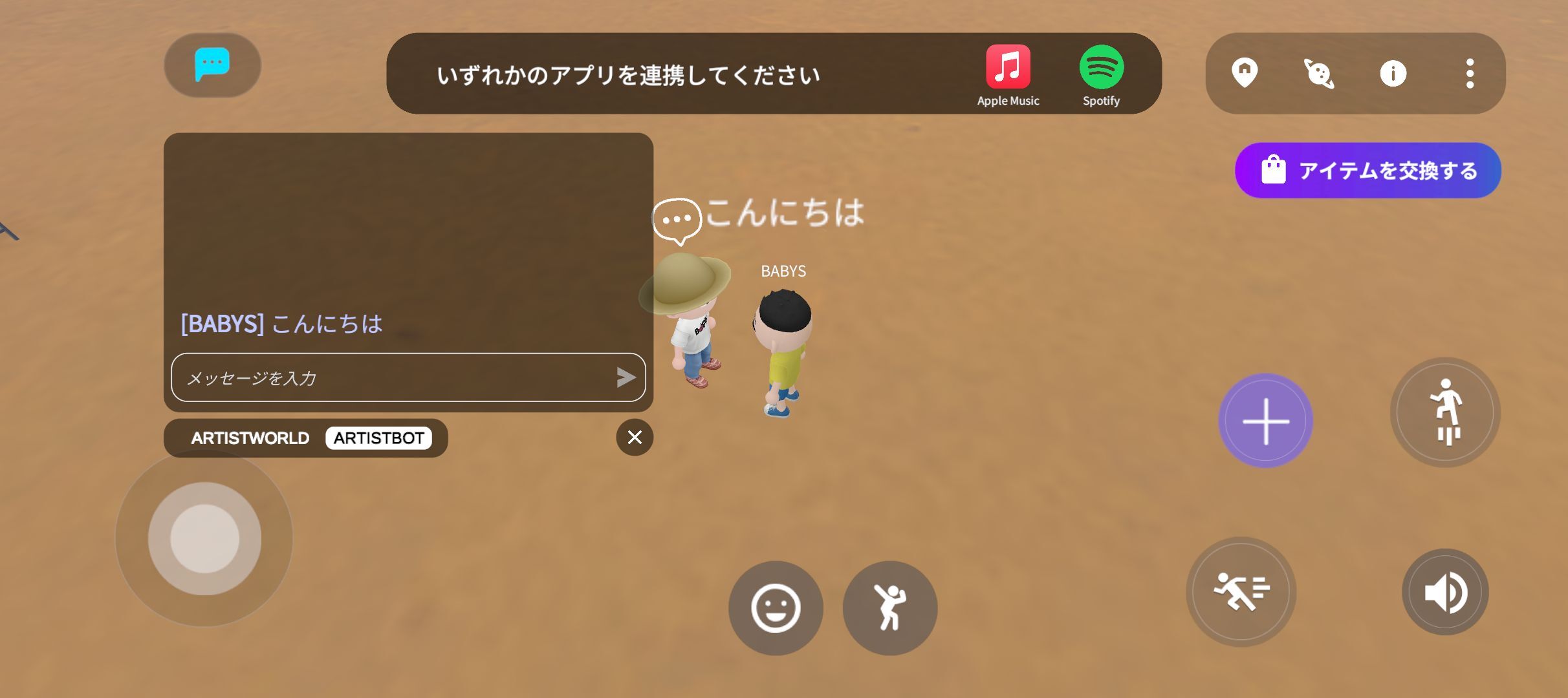 同じARTIST WORLDの中にいる人とチャットができます。