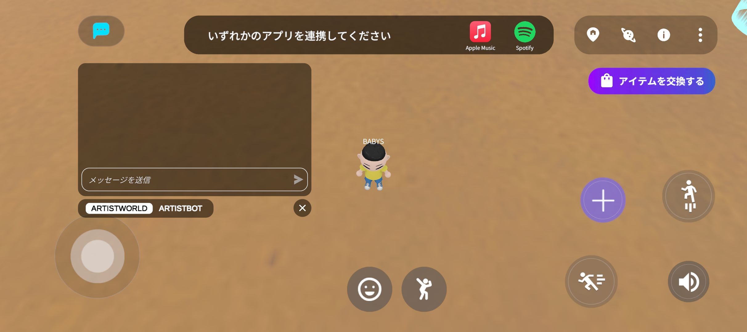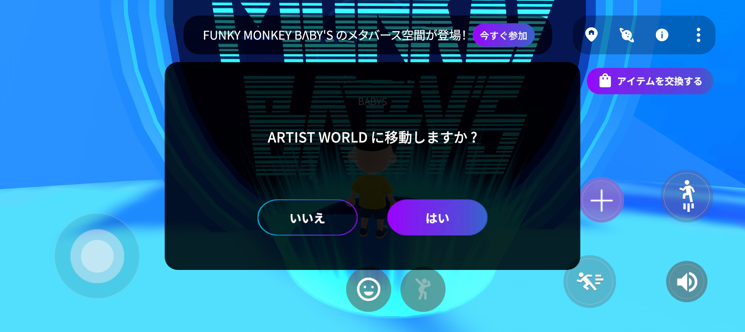 ENTRANCEから「FUNKY MONKEY BΛBY'S」の入口に入ると、ARTIST WORLDに移動できます。